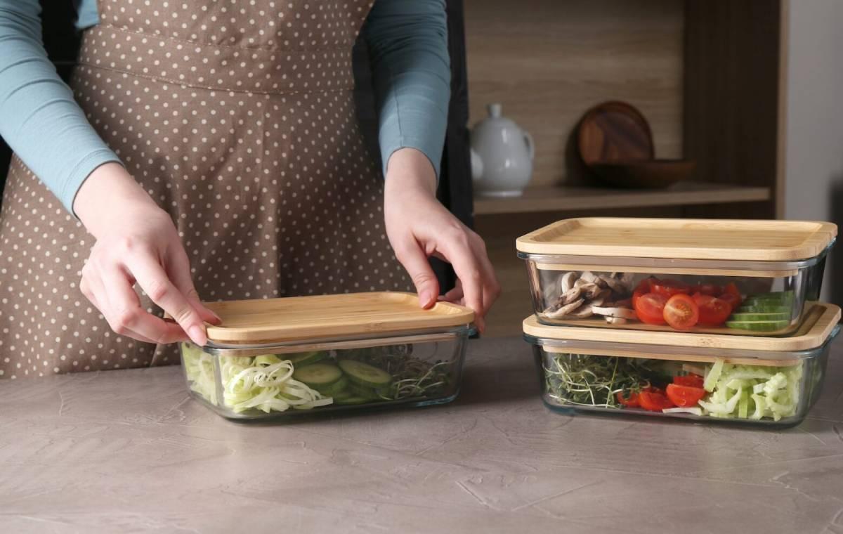 هنگام انتخاب ظروف شیشهای، مطمئن شوید که در برابر حرارت مقاوم هستند. ظرف شیشهای با درب چوبی از جنس بامبو گزینهی بسیار خوبی برای ظرف غذای محل کار است.