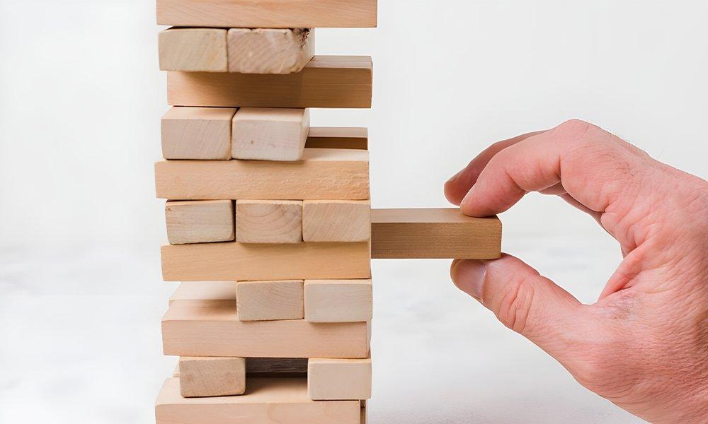 بازی جنگا یک بازی محبوب است که در آن یک برج از بلوکهای مستطیلی چوبی یا پلاستیکی ساخته میشود. بازیکنان به نوبت یکی از بلوکها را از سطوح پایین برج برداشته و آن را در بالای برج قرار میدهند، که باعث میشود ساختار برج بلندتر و بیثباتتر شود. بازی ادامه مییابد تا زمانی که برج ناپایدار شده و فرو بریزد. کسی که باعث فرو ریختن برج شود، بازنده خواهد بود.